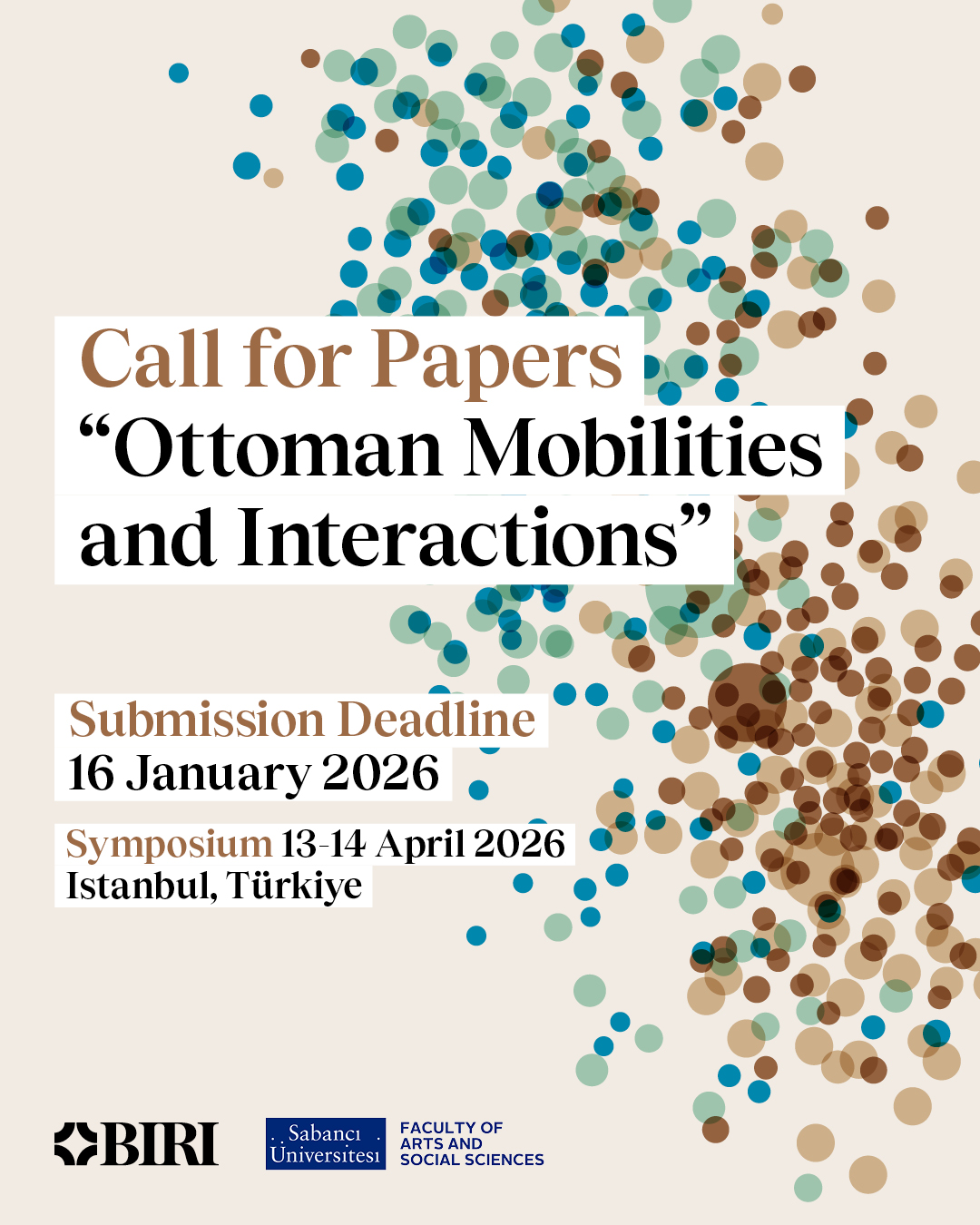 The British International Research Institutes (BIRI), in partnership with Sabancı University, invite paper proposals for a symposium organised as part of BIRI’s “Ottoman Mobilities and Interactions Project”. The symposium welcomes proposals from all periods of Ottoman history. The symposium will take place on 13-14 April 2026 in Istanbul.
